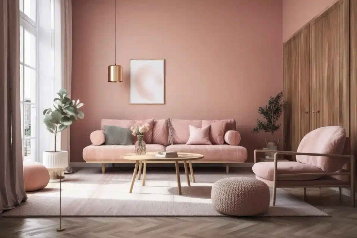 Oud roze muurverf in de woonkamer