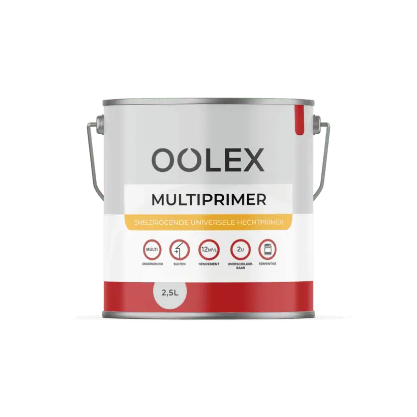 De Oolex Multiprimer is een terpentine gedragen (alkyd) primer voor bijna alle ondergronden. Zo kan je deze multiprimer gebruiken voor o.a metaal, kunststof en bestaande oude verflagen. Je creëert hiermee een hechting waarna je deze kan overschilderen met iedere buitenlak op terpentinebasis na keuze. Ook is deze multiprimer direct op een kleur na keuze te mengen.