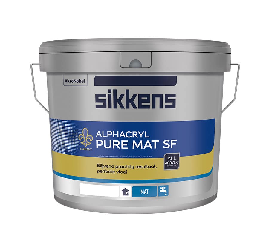 De Sikkens Alphacryl Pure Mat SF wordt door vele schilders gezien als de beste muurverf. Daarnaast heeft de Consumentenbond deze muurverf al tot twee keer toe uitgeroepen tot beste muurverf. Mede door de volgende kenmerken (eigenschappen) is deze verf de beste keus voor je muren en plafond.